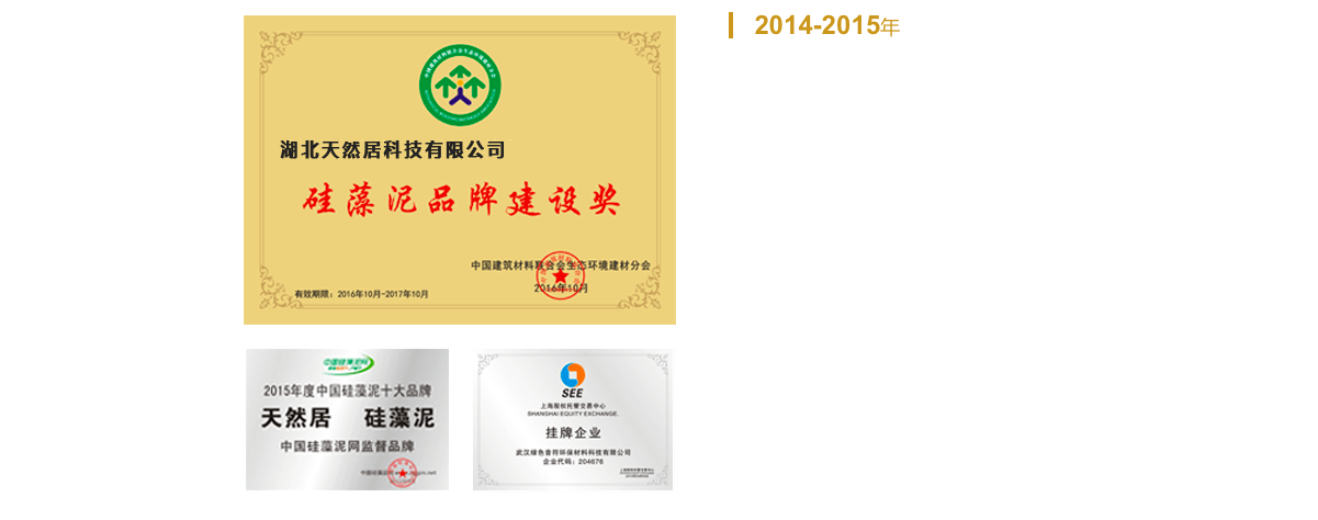 連續(xù)多年獲得《中國硅藻泥十大品牌》、《硅藻泥產(chǎn)品質(zhì)量信得過企業(yè)》、《最佳環(huán)保信得過產(chǎn)品質(zhì)量獎》、《中國優(yōu)秀綠色環(huán)保產(chǎn)品》、《生態(tài)環(huán)保壁材推薦產(chǎn)品》、《中國科技創(chuàng)新優(yōu)秀企業(yè)》、《全國建材行業(yè)十佳綠色低碳示范單位》、《中國建筑材料聯(lián)合會生態(tài)環(huán)境建材分會硅藻泥專業(yè)技術(shù)委員會會員單位》、《硅藻泥行業(yè)標準的起草及修訂單位》、《高新技術(shù)企業(yè)》等眾多殊榮及多項權(quán)威專利,贏得了社會及同行的尊敬。