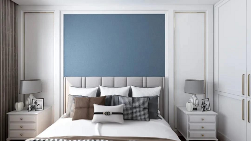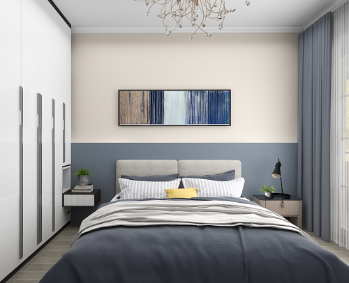 主臥在藍(lán)調(diào)的使用上更加深色系