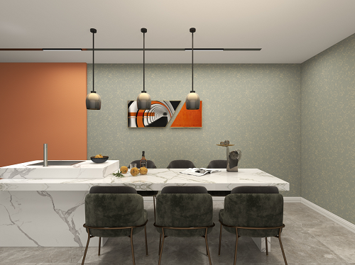 餐桌是人間煙火所在,也是關于家的美好記憶,質感強烈的大理石餐桌,絲絨質感的椅子,高雅美觀的同時,讓用餐也充滿儀式感。
