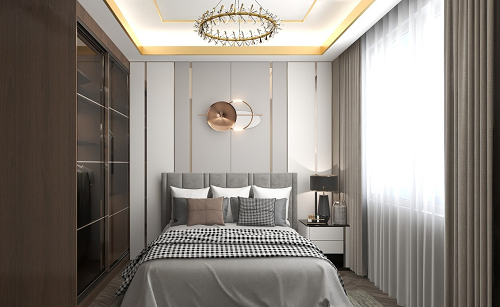 客臥沒有什么過多的裝飾,到頂的衣柜,放置換季的衣物,客人居住時,可以放置自己的物品,小巧的空間,滿足日常需求。