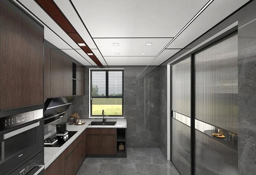 大板吊頂不僅僅是單純的將扣板的尺寸變大,還包括它的整體設(shè)計都是突破了原有小尺寸集成吊頂扣板的局限,是一種吊頂空間的全新跨越,通過與型材線梁的完美組合為消費者帶來不一樣的視覺空間體驗。