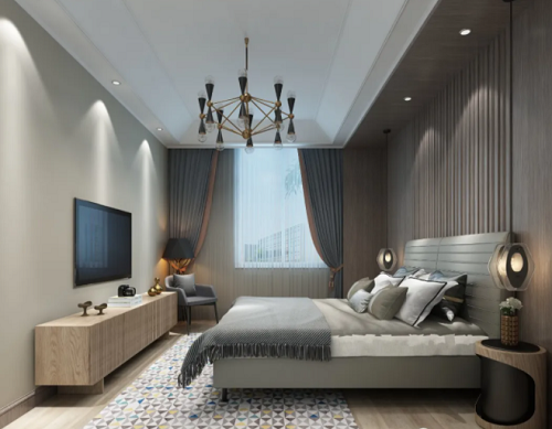主臥空間延續(xù)了整體裝修風格,現(xiàn)代輕奢的魅力得以更淋漓盡致地體現(xiàn)。