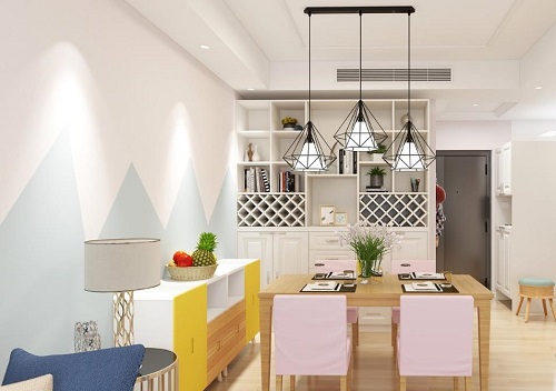餐廳設計比較有濃濃的清新感,白色的餐邊柜,各種綠植花卉點綴,搭配原木系餐桌椅,仿佛身處自然界中,清新自然,讓業(yè)主的每一餐都能沉浸在藍天白云之中。