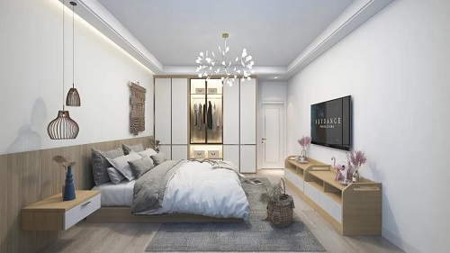 主臥空間較大,原木系的大衣柜,融合藝術(shù)的家具,床品,配飾,在空間內(nèi)表達(dá)對(duì)生活的的感受,觸感自然舒適的床品,展露休憩空間應(yīng)有的安逸。
